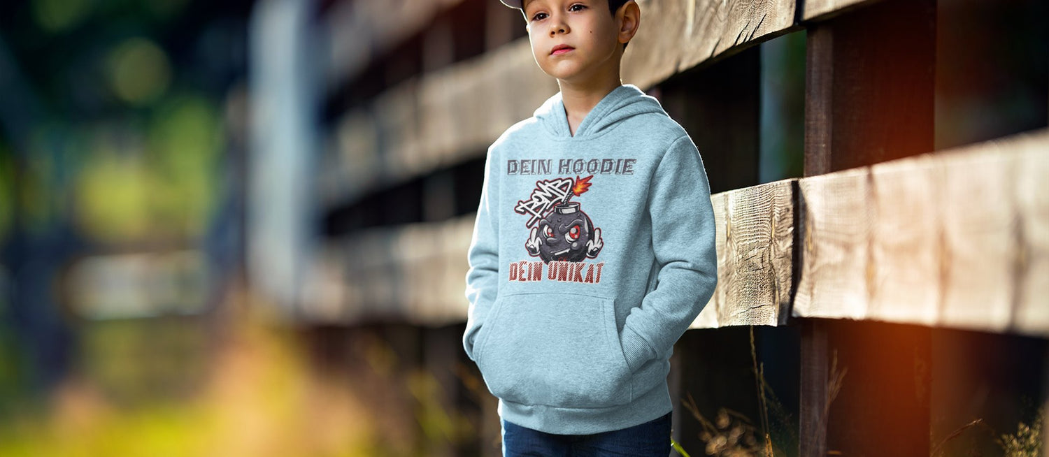 Klassischer Hoodie für coole Kids: Mit Kängurutasche zum Hände oder Schätze verbergen und Kapuze zum Einkuscheln, Verstecken und gegen plötzliche Regenschauer.